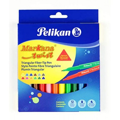 Pelikan Markana Twist Washable Markers, Triangular Barrel, 12/Set, 1 Set Each (303212US)