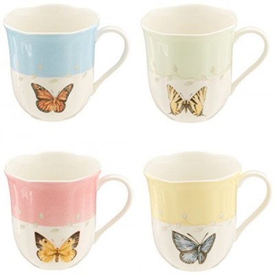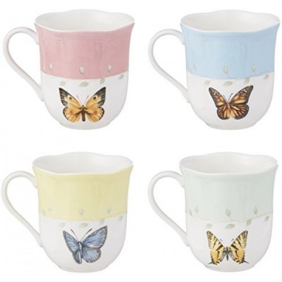 레녹스 773903 버터플라이 메도우 4피스 머그 세트, 멀티컬러, 1.85 LB