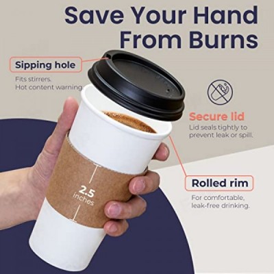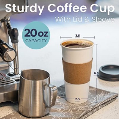 Fit Meal Prep 50 Pack 20 oz Disposable Coffee Cups with Lids, Kraft Sleeves and Stirrers, Premium Large To Go Coffee Cups with Lids, Durable Thickened Paper Hot Coffee Cup for Cold/Hot Beverages