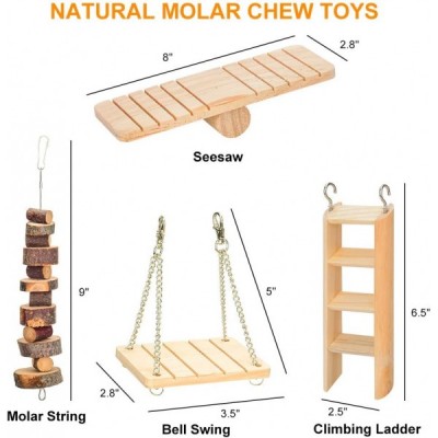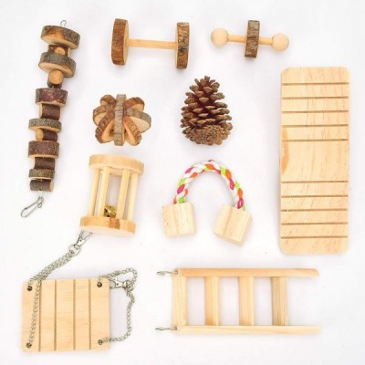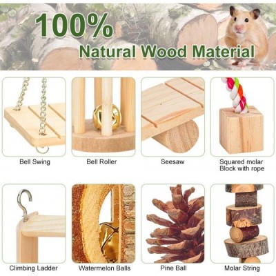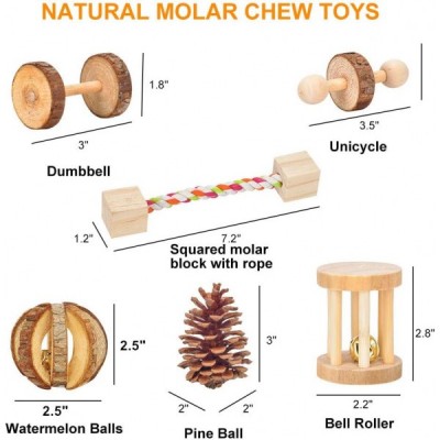 Kauspielzeug für Hamster, Rennmäuse, Ratten, Meerschweinchen, Chinchilla, Kauspielzeug, Zubehör, natürliche Holzhanteln, Übungsglocke, Roller, Molar Spielzeug für Kaninchen, Vogel und Häschen