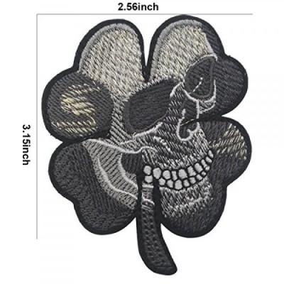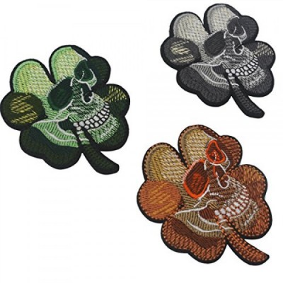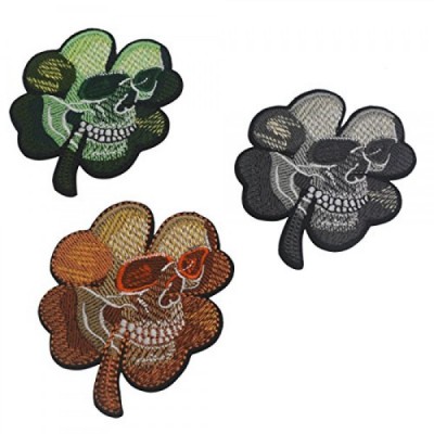 3PCS 아일랜드 네 잎 클로버 전술 패치 내 작은 현실적인 금이 간 해골 해골 수 놓은 DIY 패치 Applique 후크 및 루프 백팩 자켓 청바지 의류-2.56 x 3.15 인치