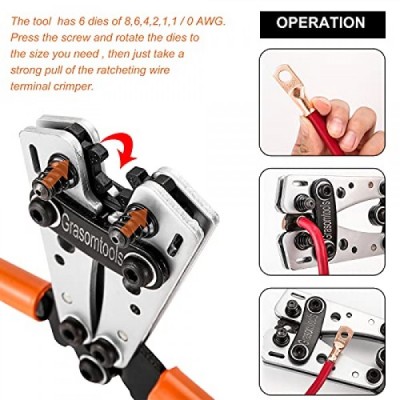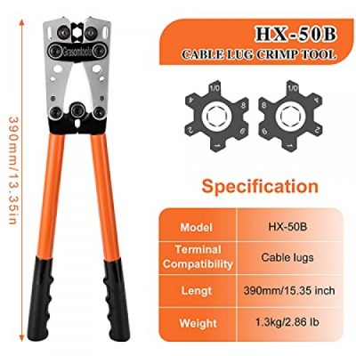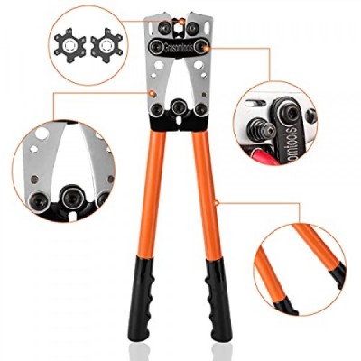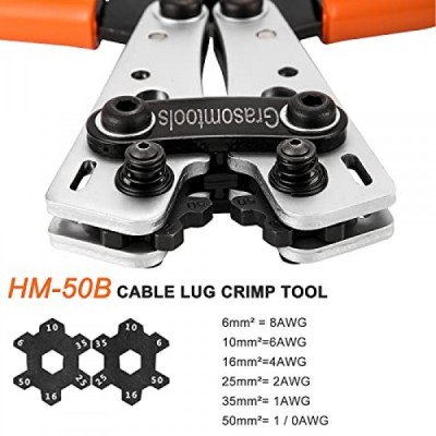 Battery Cable Lug Crimper Tool 6-50mm², Wire Crimping Tool, Pliers for Crimping Wire Cable with Cable Cutter for 10,8,6,4,2 and 1/0 AWG Wire Cable Cutting and Stripping