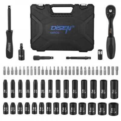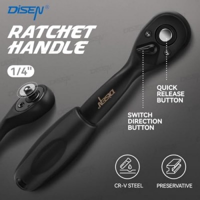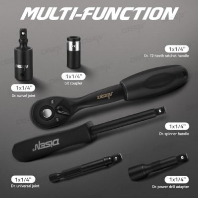 1/4'' Drive Socket Set,Metric(4-15mm),Deep & Shallow with 72-Tooth Ratchet Wrench,Universal Joint & Power Drill Adapter for Home and automotive repairs