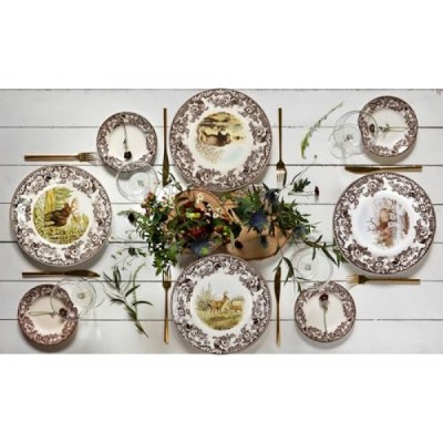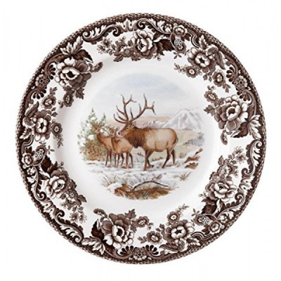 Spode Woodland 샐러드 접시, 엘크, 8" | 캐빈 코티지 롯지 식기류 | 고급 토기로 영국에서 제작됨 | 전자레인지 및 식기세척기 사용 가능