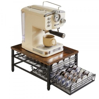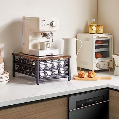 IBUYKE 네스프레소용 2단 커피 포드 서랍 홀더, 캡슐 포드 보관 주최자, 컴팩트 언더 커피 포트 보관 서랍, 슬림 홈 주방 카운터 주최자 TCJ102H, 러스틱 브라운
