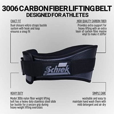 Schiek Sports Model 3006 Carbon Fiber Lifting Belt - Nylon Fiber Gym Belt with Marine Vinyl Back Support