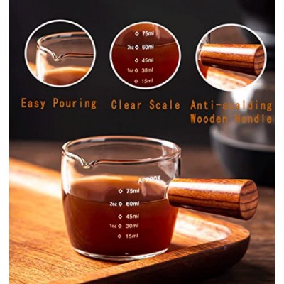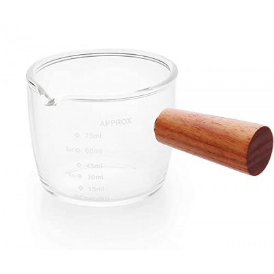 Espresso Shot Glass 75ML Single Spouts Espresso Measuring Cup Accessories with Wood Handle for Barista Milk Coffee Espresso Making (1 Pack)