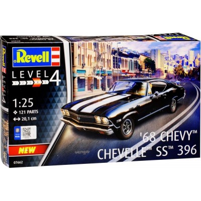Chevrolet Chevy Chevelle SS396 Coupe Schwarz mit Weiss 2. Generation 1968-1972 Bausatz Kit 1/24 1/25 Revell Modell Auto mit individiuellem Wunschkennzeichen Mit Wunschkennzeichen