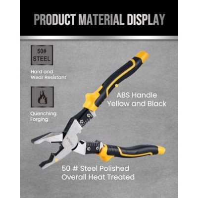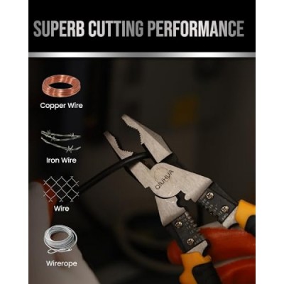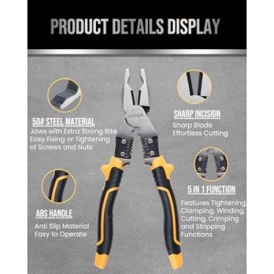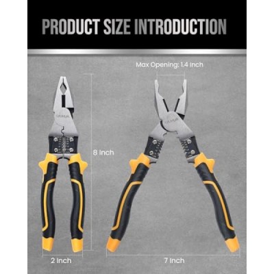 8 inch Linesman Plier, 5-IN-1 Electrical Pliers with Cable Cutter and Wire Stripper Crimper