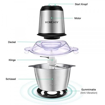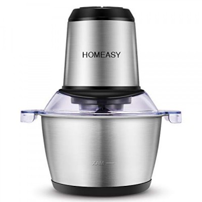 HOMEASY 다지기 주방 전기 350W 멀티 다지기, 2L 스테인리스 스틸 용기, 2단계 속도, 스테인리스 스틸 칼 4개, 고기, 양파, 과일, 야채용 범용 다지기