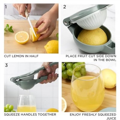 Rae Dunn Metal 2-In-1 Lemon Squeezer Manual - Sturdy, Max Extraction Hand Juicer Lemon Squeezer Gets Every Last Drop - Easy to Clean Manual Citrus Juicer - Easy-to-Use Lemon Juicer Squeezer (Sage)