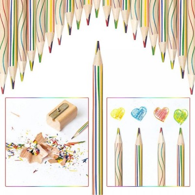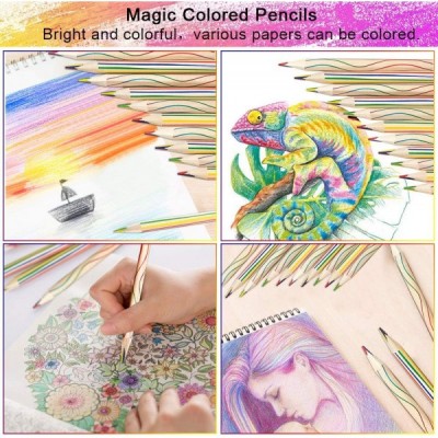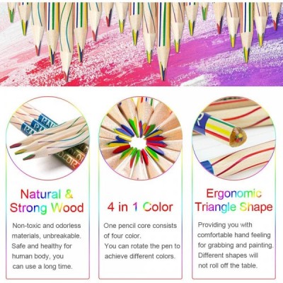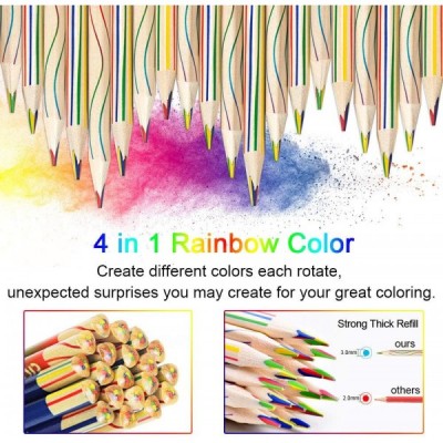EMAGEREN 30 개 레인보우 연필 4 in 1 드로잉 연필 레인보우 색연필 세트 레인보우 색 색연필 매직 연필 색연필 나무 예술 드로잉, 색칠 및 스케치를위한 여러 가지 빛깔의