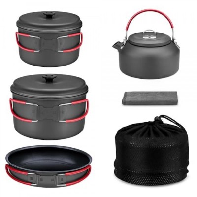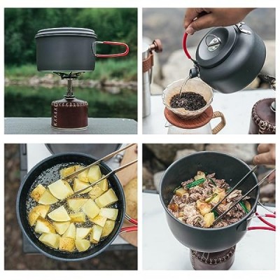 Alocs 캠핑 조리기구 세트, 내구성이 뛰어난 알루미늄 캠핑 요리 세트, 주전자가 포함된 소형 캠핑 냄비 및 팬 세트, 야외 요리, 하이킹 및 피크닉을 위한 붙지 않는 캠