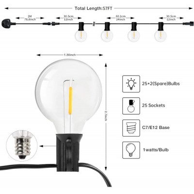 Pikapi G40 야외 연결 가능 LED 문자열 조명 50FT 꽃줄 조명 25+2 플라스틱 비산 방지 글로브 1W 전구, IP44 방수 2700K 따뜻한 흰색 파티오 조명 잡초 파티 정원