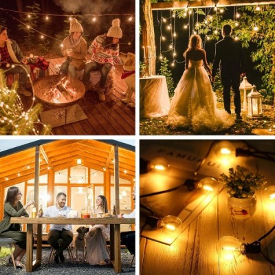 Pikapi G40 Outdoor Connectable LED String Lights 50FT Festoon Lighting with 25+2 Plastic Shatterproof Globe 1W Bulbs,IP44 Waterproof 2700K Warm White Patio Lights for Weeding Party Garden