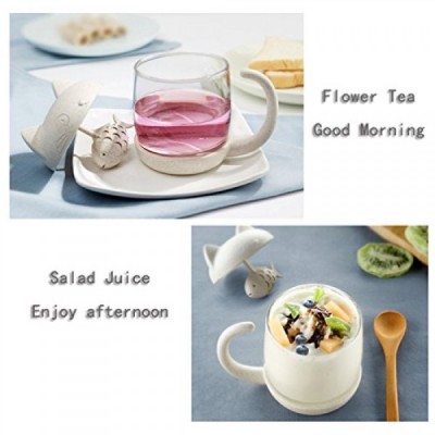 JEWOSTER 생선 차 주입기 여과기 필터가 포함된 귀여운 고양이 유리 컵 차 머그잔