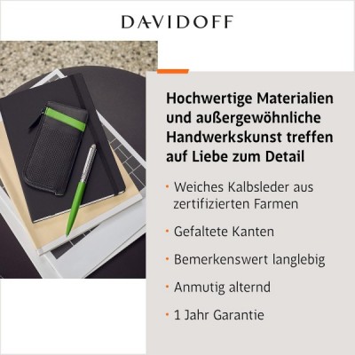 DAVIDOFF Paris Kartenetui mit Münzfach Schwarz / Grün – Moderne Brieftasche aus feinem Leder mit Prägung – Kreditkartenetui mit 3 Steckfächern und Reißverschlussfach