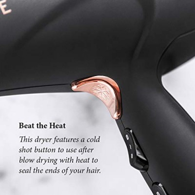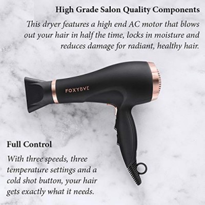 FoxyBae Blomance Professional Hair Dryer - Salon Grade Rose Gold and Black Ionic Blow Dryer - Ceramic Tourmaline & Negative Ion