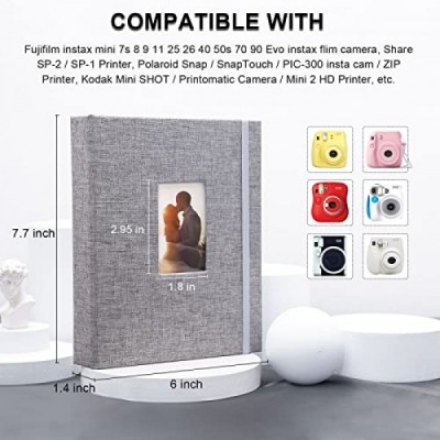 Vienrose 2 팩 미니 폴라로이드 사진 앨범 책 208 포켓 2x3 인치 사진 Fujifilm Instax Mini 7s 8 9 11 25 26 40 50s 90 Evo Z2300 즉석 카메라, 폴라로이드 스냅 그레이