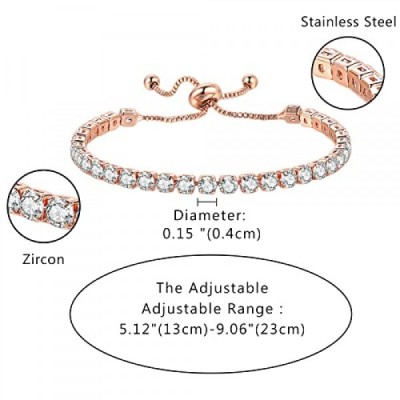 JewelryWe Women's Bracelet with Zirconia Stones Tennis Bracelet Bangle Bracelet Gift for Mother Girlfriend Adjustable Rose Gold Pack of 2, Stone
