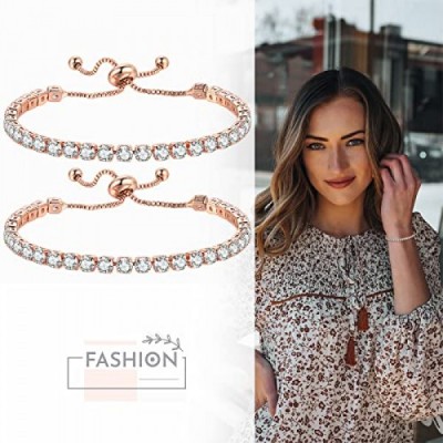 JewelryWe 지르코니아 스톤이 달린 여성용 팔찌 테니스 팔찌 팔찌 팔찌 어머니 여자 친구를위한 선물 조정 가능한 로즈 골드 팩 2, 스톤