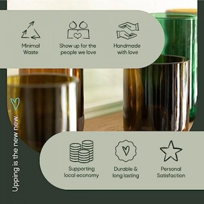 Upcycled Olive Drinking Glasses | 250 ML | 8.45 OZ | Set of 6 | Sustainable Water Glasses | Environmentally Friendly Dark Brown Glasses For Home