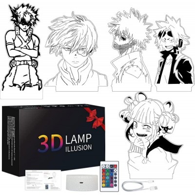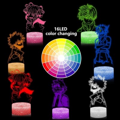 My Hero Academia 3D Night Light Kids, 5 in 1 Pattern Set & 16 Color Change with Remote Control Himiko Toga Bedside Lamps, Japanese Anime Birthday Xmas Anime Gifts for Kids Boys Girls Friends Teens Mha