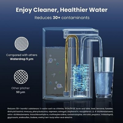 Waterdrop Electric Water Filter Pitcher, Dispenser, 200-Gallon, 5X Times Long-Life Countertop Water Filter System, NSF/ANSI 401&53&42, Reduce Chlorine, Lead, PFAS, 15-Cup, White, with 1 Filter