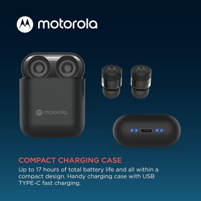 Motorola Sound Moto Buds 120 - Bluetooth in Ear Mini Kopfhörer - Tragbar Ladebox und Integriertem Mikrofon - 17 Std. - IPX6 Waterproof - Touch Control - Kompatibel mit Siri und Google - Schwarz BLACK MOTOBUDS120