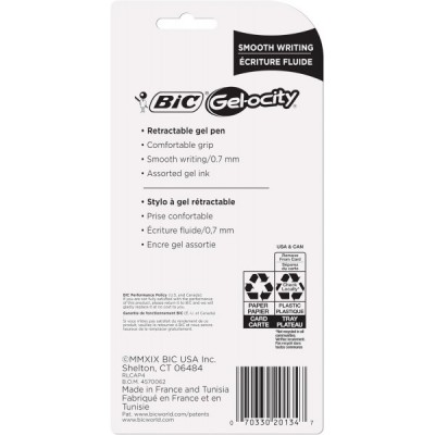 Bic RLCAP41-AST Multi Color Bic Gelocity Fashion Pen 4 Pack