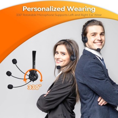 Voistek 휴대폰 헤드셋(마이크 포함) 소음 제거 및 볼륨 조절, iPhone용 PC 헤드폰 3.5mm 잭 Samsung Computer Business Skype 소프트폰 콜 센터 사무실, 클리어 채팅, 울트라 컴포트 블