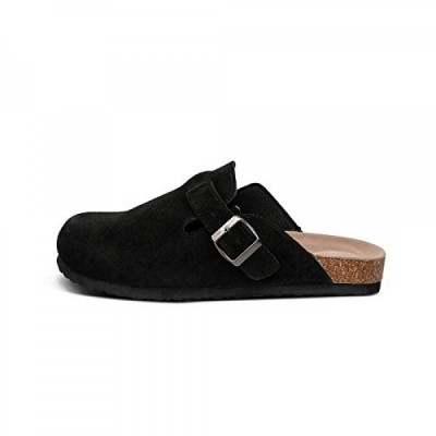 TF STAR 유니섹스 소프트 풋베드 나막신 암소 스웨이드 가죽 나막신, 여성용 코르크 나막신 신발 남성용 탄
