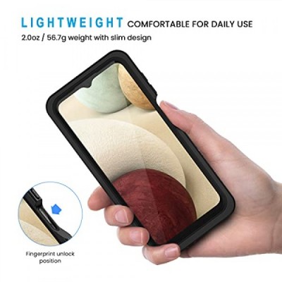 Lanhiem Samsung Galaxy A12 케이스, 화면 보호 장치가 내장된 IP68 방수 방진 케이스, Galaxy A12용 견고한 전신 충격 방지 보호 커버(블랙/클리어)