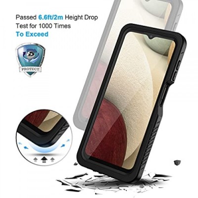 Lanhiem Samsung Galaxy A12 Case, IP68 Waterproof Dustproof Case with Built-in Screen Protector, Rugged Full Body Shockproof Protective Cover for Galaxy A12 (Black/Clear)