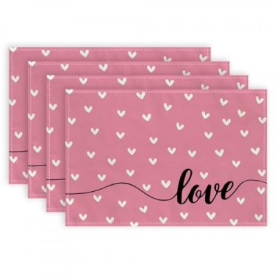 ARKENY 발렌타인 데이 Placemats 12x18 인치 4 개 세트, 하트 러브 핑크 계절 농가 삼베 실내 주방 기념일 결혼식 식탁 장식 홈 파티 AP511-18