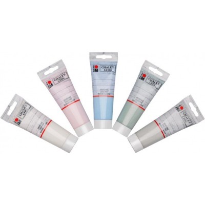 Marabu 0261000000087 - Chalky Chic Set mit 5x 100ml deckender, matter Kreidefarbe, Wasserbasis, Dosierverschluss - Rollen, Streichen und Tupfen auf Holz, Metall und Kunststoff, Used Look anschleifbar Set mit 5 Farben