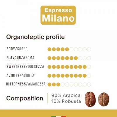 Dongiò Caffè Espresso Milano, ESE 44mm 포드, 이탈리아에서 블렌딩 및 로스팅됨 - 1인분 커피 포드 50개, 중간 라이트 로스트(강도 6/10)