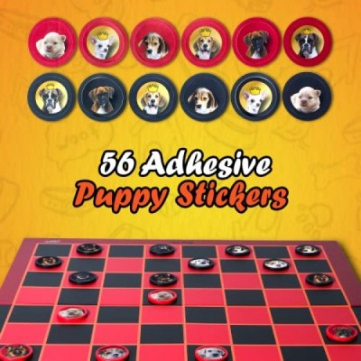 Puppy Checkers - Fun Board Games for Kids 8-12, Adults, and Families. Checkers Board Game for Kids with 56 Adhesive Puppy and Dog Stickers! Learn Checkers for Kids Ages 4-8