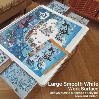 서랍과 덮개가 있는 1500개 회전 플라스틱 퍼즐 보드, 성인용 35x27 휴대용 직소 퍼즐 테이블, 게으른 수잔 회전 퍼즐 보드(특허 디자인)