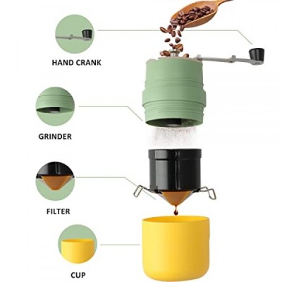 C1365 수동 그라인더, 영구 필터, 컵이 포함된 올인원 커피 메이커(2) | 캐빈, 캠프장, RV, 주방, 사냥 및 배낭여행(화이트)