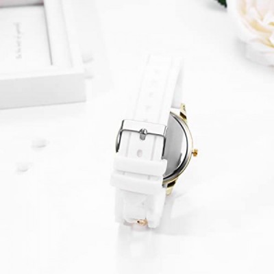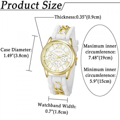 JewelryWe Watches Women's Analogue Quartz Wrist Watch Roman Numerals Casual Watch with Curb Chain Silicone Strap White / Pink / Purple