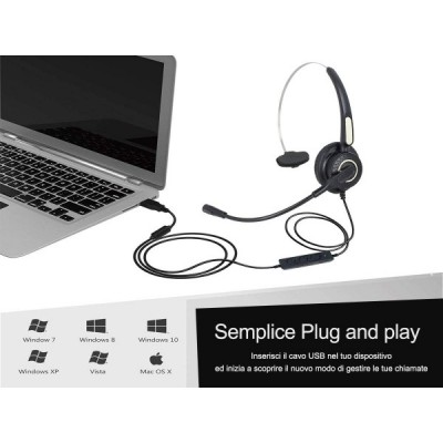 Ledlux, VH500S, Mono-Kopfhörer mit USB-Mikrofon, professionelles Headset für PC, Notebook, Büro, Call Center, Skype, geschäftliche Verwendung