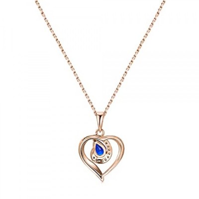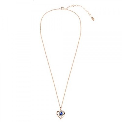 YOURDORA Women's Jewellery 925 Sterling Silver Heart Necklace Heart Pendant with Austria Crystal, Blue, Rose Gold, Sterling Silver, Crystal