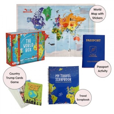 World Box Learn Geography with World Map Poster for Wall, Country Trump Cards for Kids, Fake Passport, Travel Scrapbook, Birthday Gift for Boys, Girls 5 6 7 8 9 10 12 Years