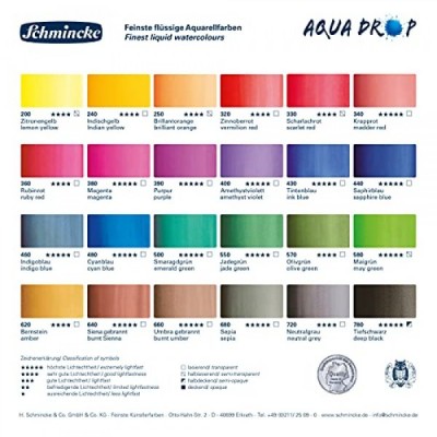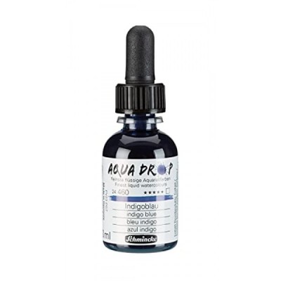 Schmincke - AQUA DROP, 액체, 안료 기반 수채화, 인디고 블루, 30ml 피펫 병, 24460034, 수채화 페인팅, 도시 스케치, 캘리그래피, 핸들터링, 내광성