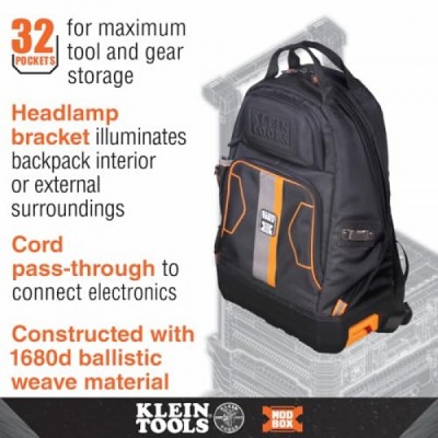 Klein Tools 62201MB MODbox 전기기사용 도구 백팩, 최대 도구 보관을 위한 32개의 포켓이 있는 맞춤형 모바일 워크스테이션