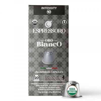 ESPRESSORO 20 USDA 유기농 에스프레소 포드 - 네스프레소 오리지널 라인 머신과 호환되는 BIANCO 알루미늄 캡슐. 인텐시티 10 프리미엄 이탈리안 에스프레소 커피 캡슐