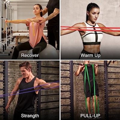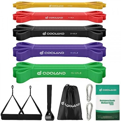 Odoland 5팩 풀업 보조 밴드, 풀업 스트랩, 도어 앵커 및 핸들이 있는 저항 밴드, 스트레치 모빌리티, 파워리프팅 및 eGuide가 포함된 추가 내구성 운동 밴드