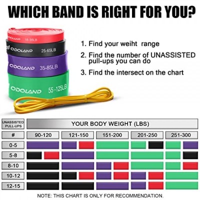 Odoland 5 Packs Pull Up Assist Bands, Pull Up Straps, Resistance Bands with Door Anchor and Handles, Stretch Mobility, Powerlifting and Extra Durable Exercise Bands with eGuide