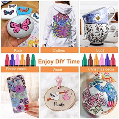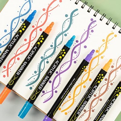 Betem 12 Colors Dual Tip Acrylic Paint Pens Markers, Acrylic Paint Pens for Wood, Canvas, Stone, Rock Painting, Glass, Ceramic Surfaces, DIY Crafts Making (12 DUAL TIP PAINT PENS)